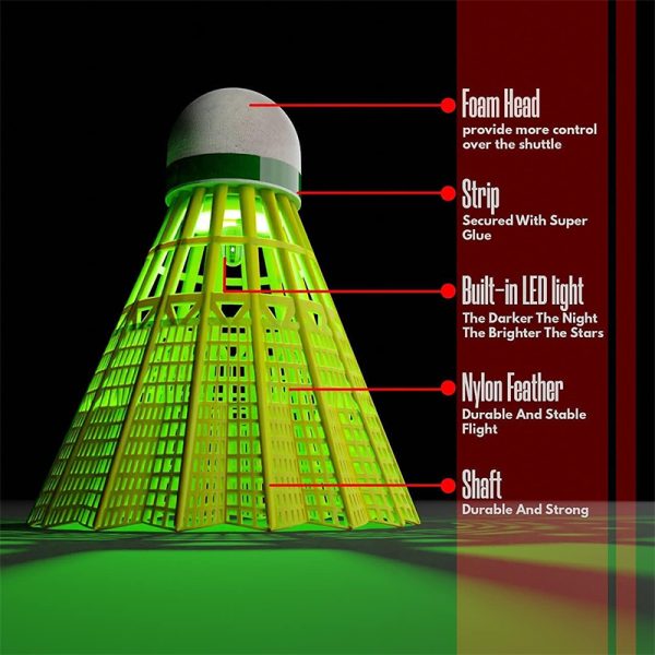 - 🏸 LED Shuttlecocks: Equipped with high quality and long lasting LEDs. 1x Red, 1x Blue, 1x Green, & 2x alternates between all three colors glow in the dark birdies.